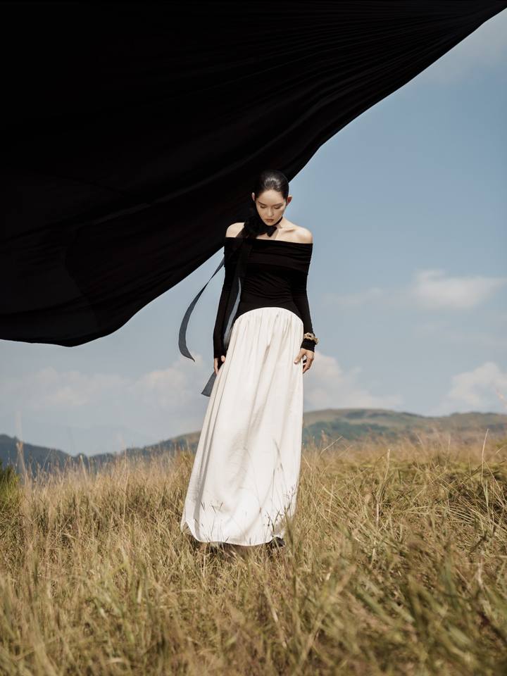 Fabricantes originales y diseño Tela ecológica 70% Ten-cel 30% Lana Sexy Elegante Vestidos de manga larga Mujeres DEMPSEY VESTIDO