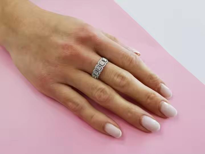 Conjunto de anillo de diamante de corte esmeralda moissanita Original 925 anillo de novia de plata sólida media eternidad banda de boda conjunto de bisel elegante