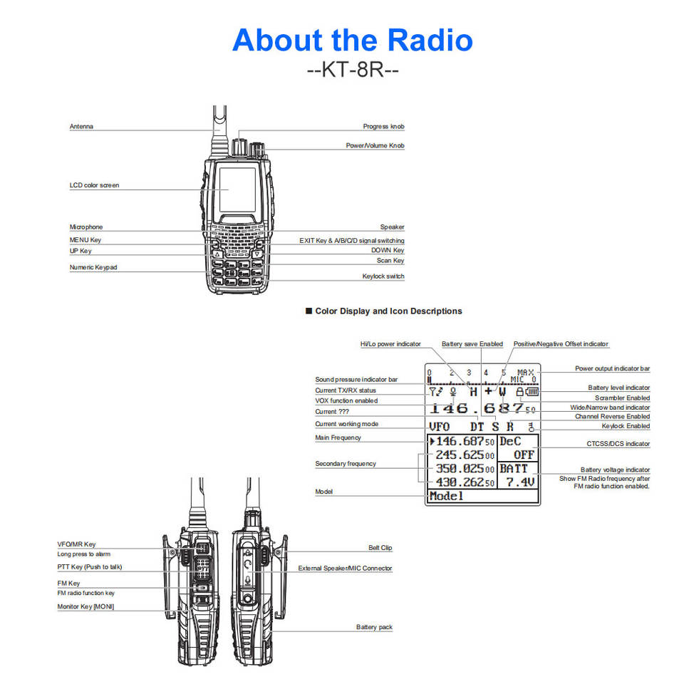 Original QYT Quad banda de mano radio de dos vías KT-8R al aire libre KT 8R UV 2 radios 5W radio de jamón transceptor