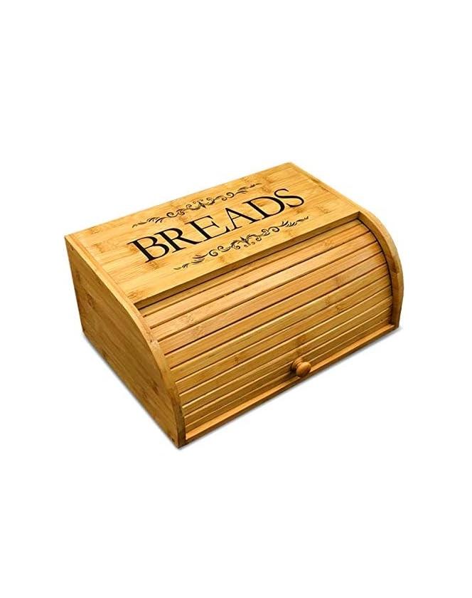 Caja de pan enrollable original, contenedor de almacenamiento de bambú, diseño retro, contenedor de almacenamiento de alimentos de gran capacidad de bambú de una sola capa (natural)