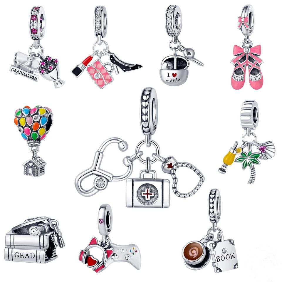 Abalorios Originales de Plata de Ley S925 con Forma de Zapatillas de Ballet Rosas, Colgantes de Bailarina de Ballet, Abalorios para Hacer Joyas, Compatibles con Pulseras y Collares para Mujer