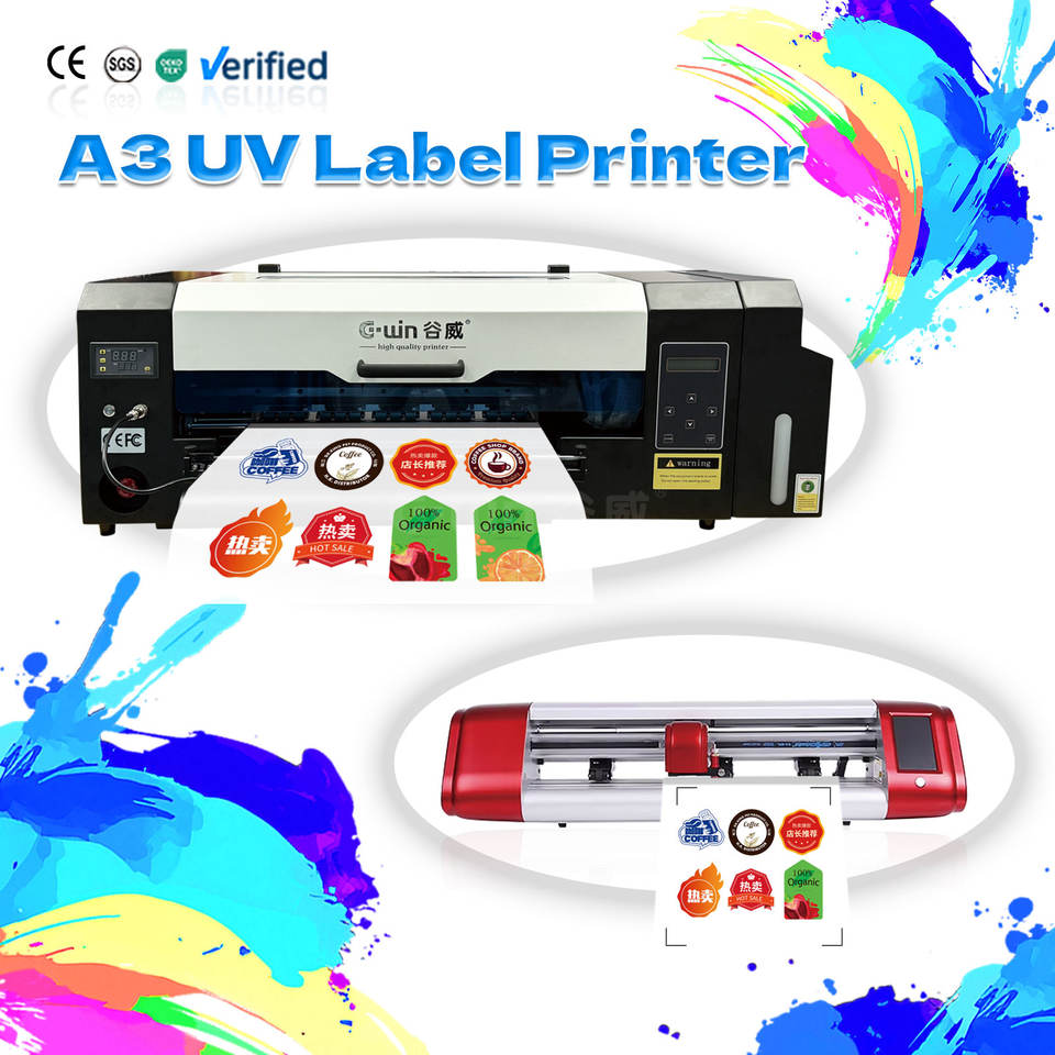 Gwin GW450 6 colores con máquina de impresión de etiquetas de barniz Single Pass A3 Mini UV Led Roll to Toll Sticker Printer