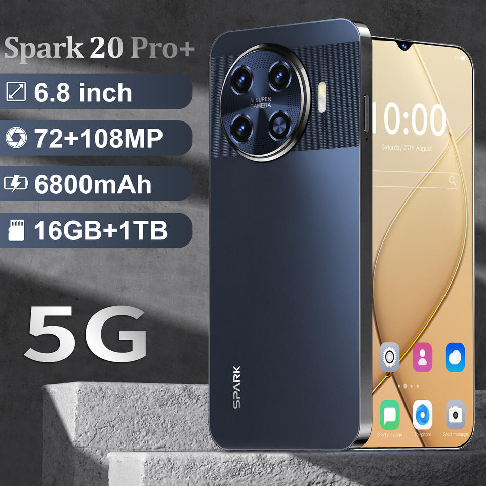 Teléfono Móvil Inteligente Original Spark 20 Pro+ con CPU Deca Core, Reconocimiento Facial, 5G LTE HD, 16 GB + 1 TB de Almacenamiento Grande, Doble SIM