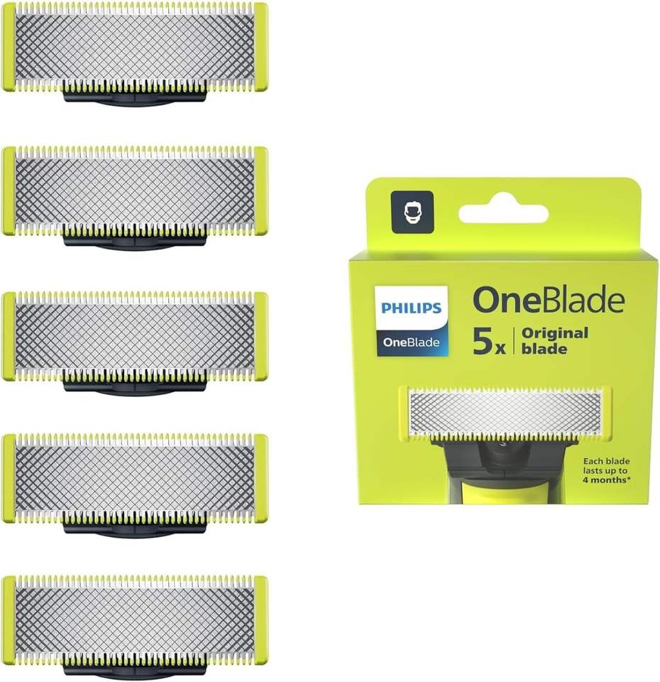 Cuchillas de Repuesto Originales de Acero Inoxidable para Philips OneBlade 5, Compatibles con Todas las Afeitadoras Eléctricas OneBlade (QP250/50)