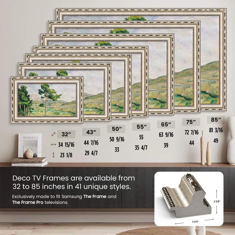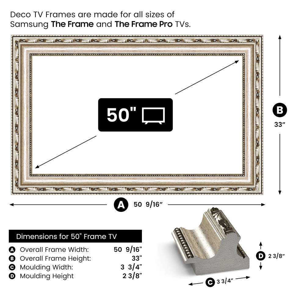 Televisor de pantalla plana con marco inteligente plateado ornamental de 50 pulgadas compatible con televisores de pantalla plana