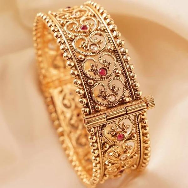 Brazalete de Filigrana de Resina Ornamentada con Detalles de Piedras Rojas, Joyería Tradicional Hecha a Mano Ecológica