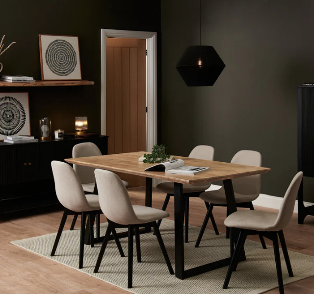 Juego de Mesa de Comedor Rectangular de Madera de Teca Sólida Oro, 7 Piezas, Diseño Minimalista para Uso en Hoteles y Villas