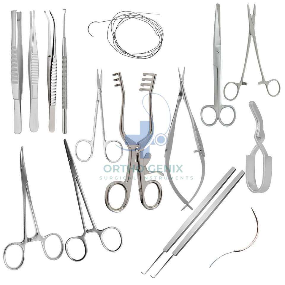 Juego de instrumentos de Cirugía Torácica de acero inoxidable Ortho Genix de 31 piezas para procedimientos quirúrgicos como toracotomía y cirugía pulmonar