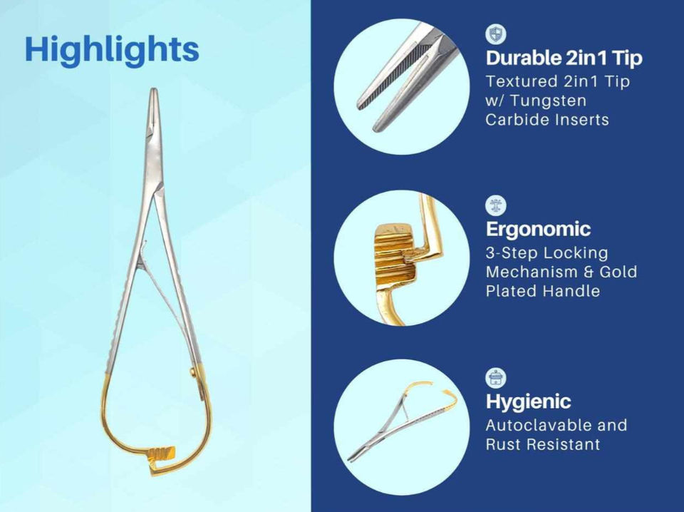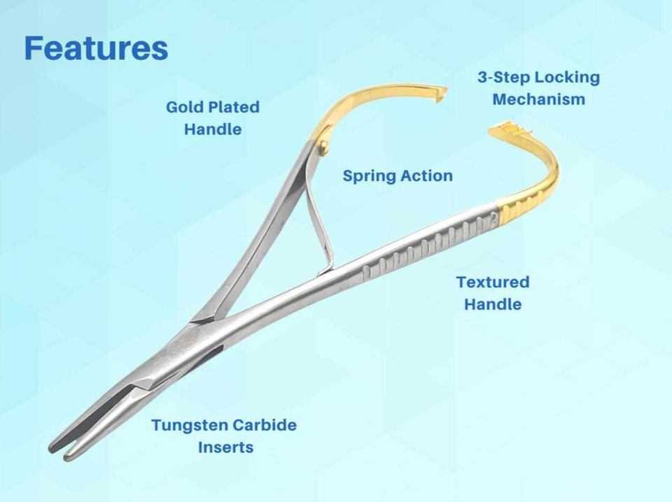 Pinza Porta Agujas Mathieu de Ortodoncia, Instrumentos Quirúrgicos Dentales de Acero Inoxidable, Fuente de Alimentación Manual