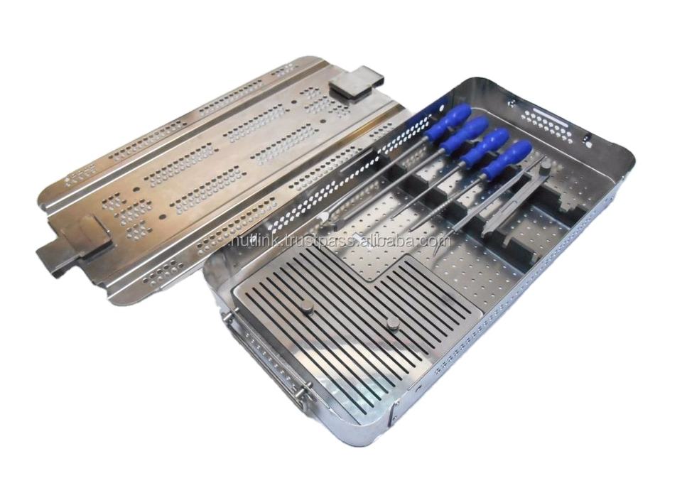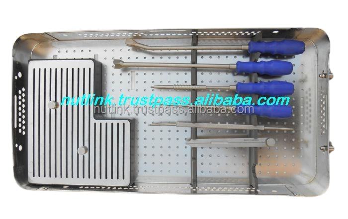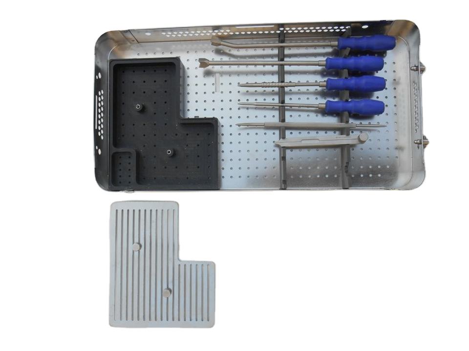 Juego de instrumentos para implantes vertebrales ortopédicos Bandeja de jaula Peek quirúrgica de titanio Base de instrumentos quirúrgicos