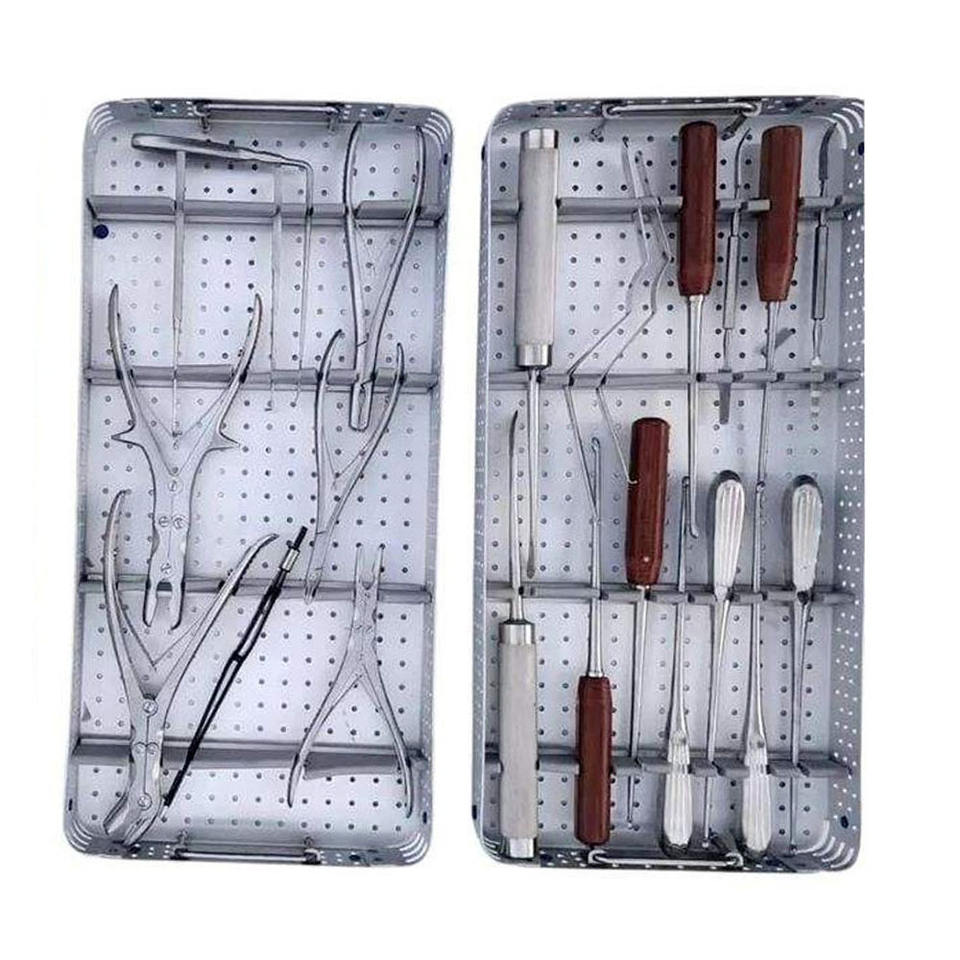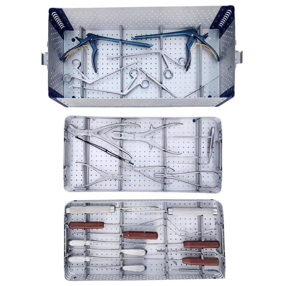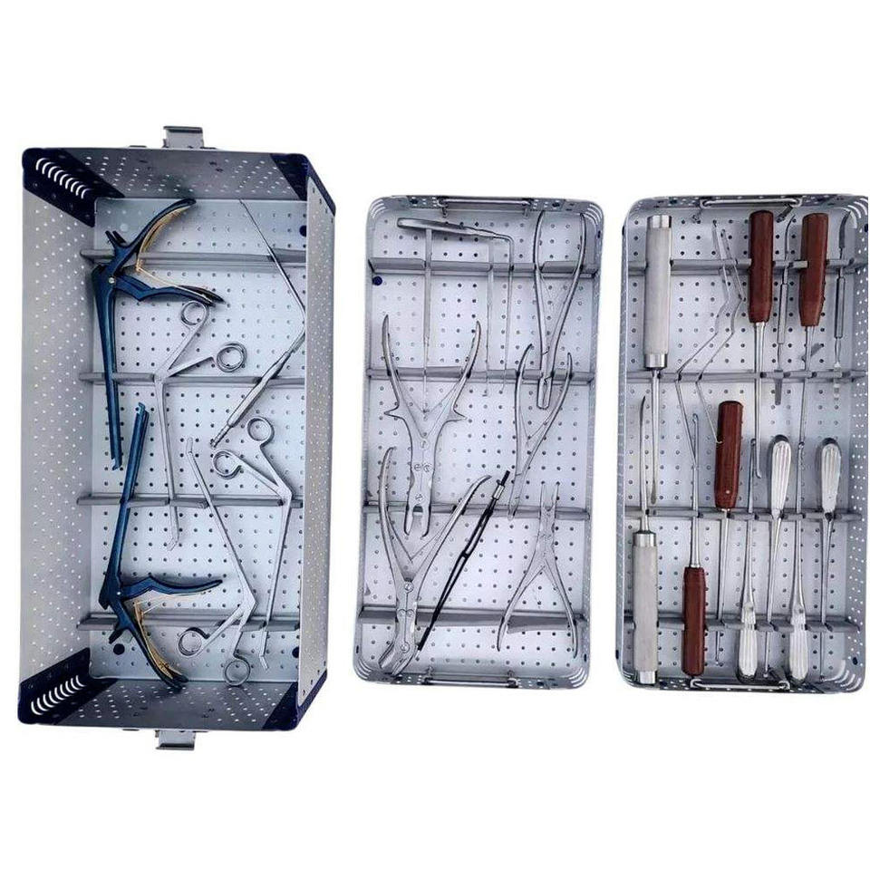 Juego de Instrumentos Quirúrgicos Ortopédicos para Cirugía de Columna Lumbar, Instrumentos Quirúrgicos de Neurocirugía de Acero Inoxidable, Caja Esterilizada, Manual MOL