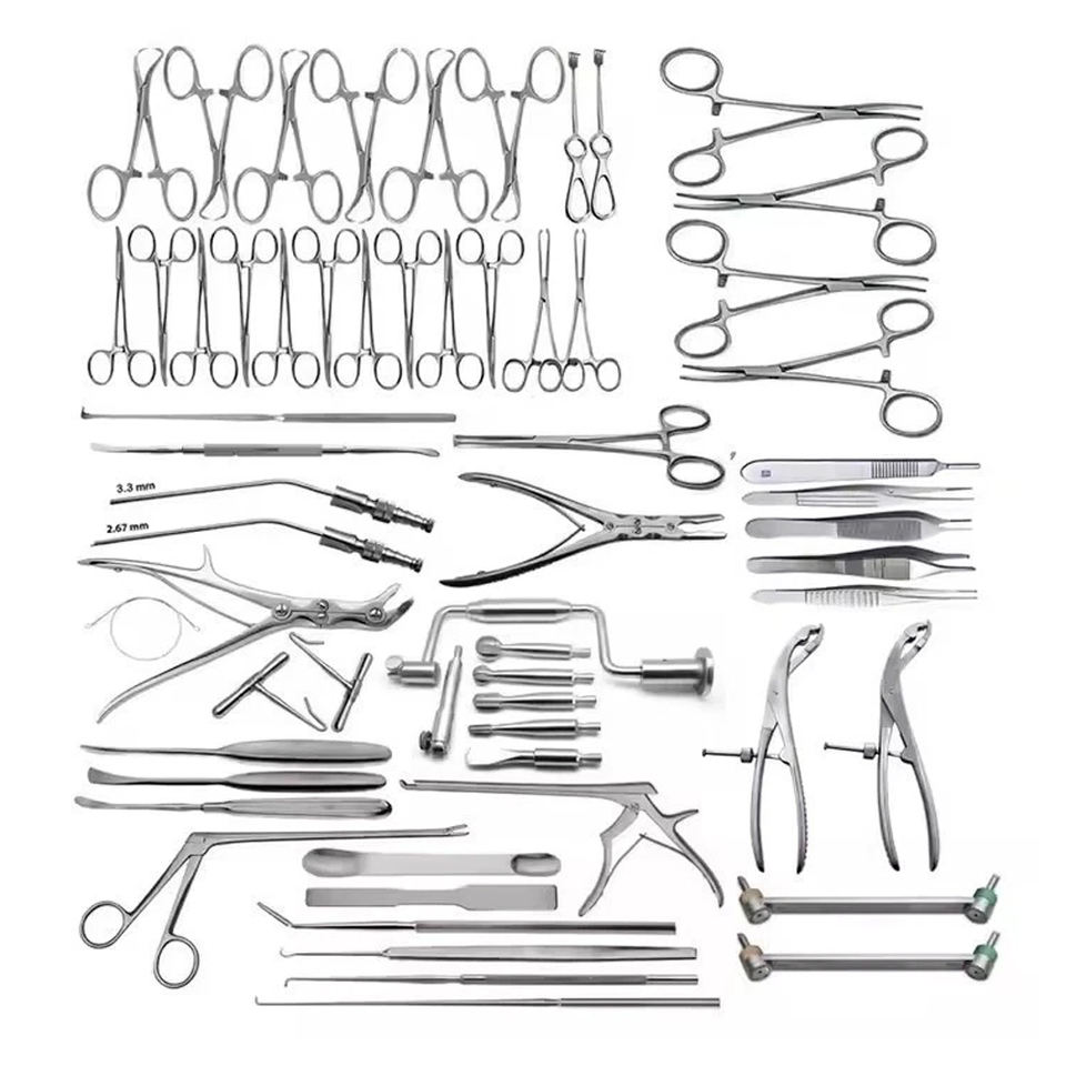 Juego de instrumentos de neurocirugía ortopédica de 151 piezas, instrumentos quirúrgicos de acero inoxidable alemán.