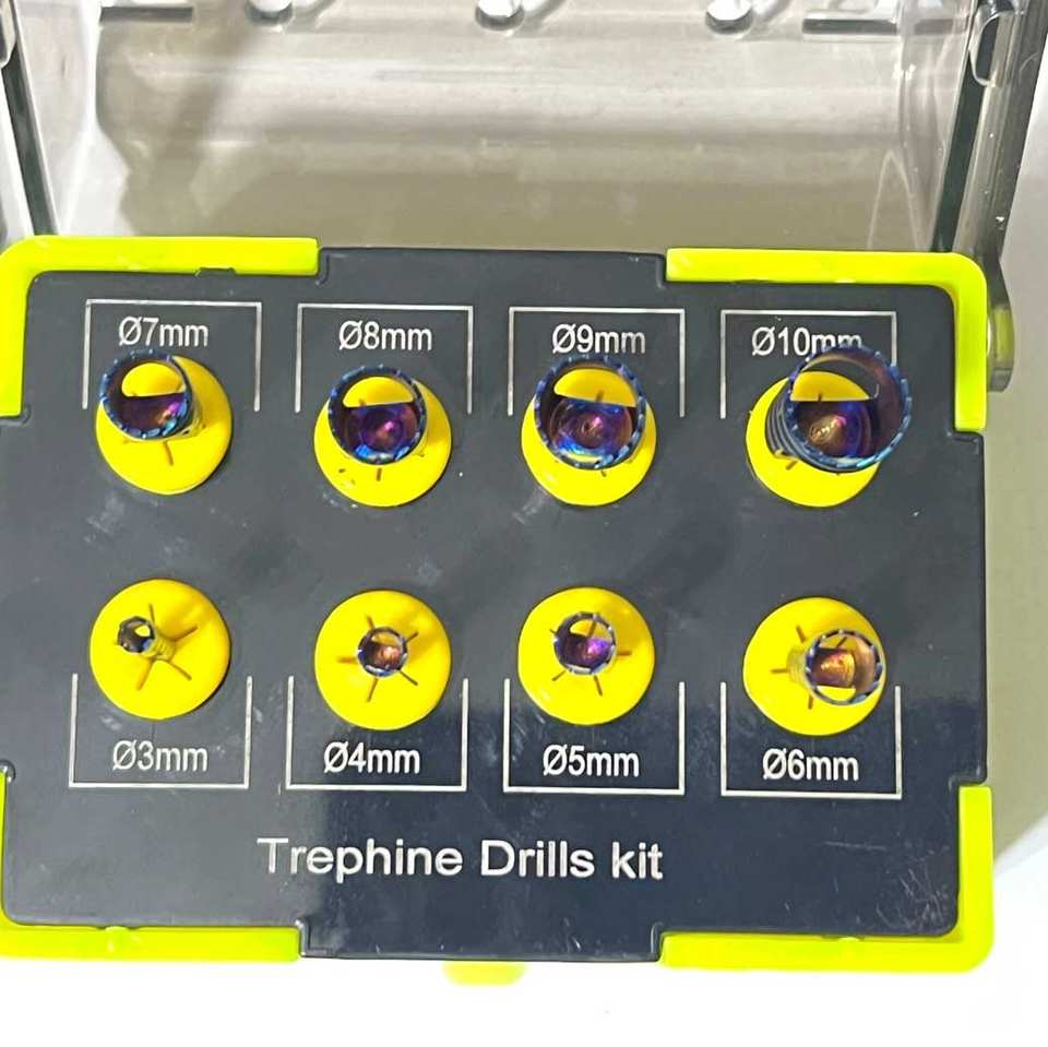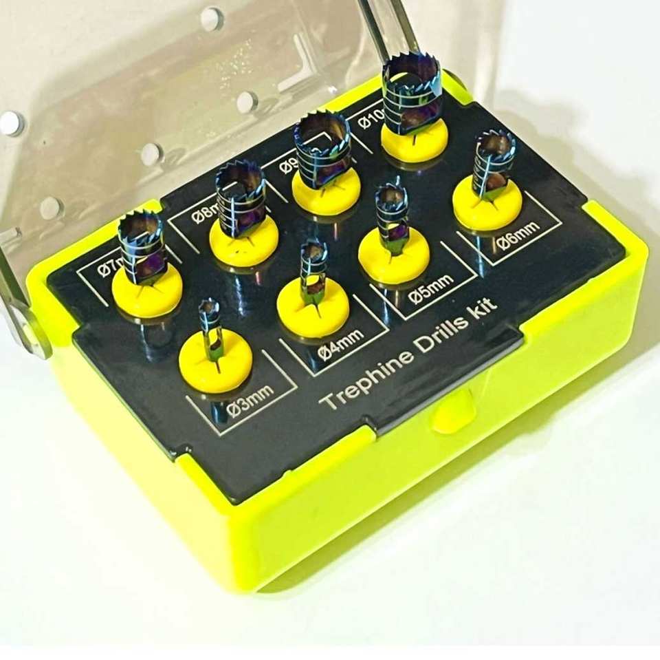 Kit de brocas de trefina para implantes quirúrgicos ortopédicos, juego de 8 piezas, acabado satinado, grado quirúrgico, manual de acero inoxidable aprobado por CE