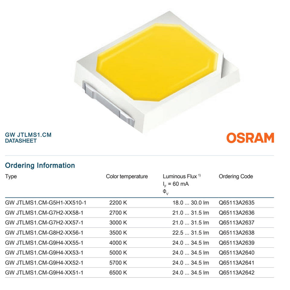 Luminous efficacy:typ. 141 lm/W @ 4000 K