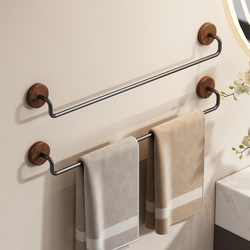 Toallero de madera de nogal con 2 barras, autoadhesivo, minimalista, para baño, estante de almacenamiento para tocador