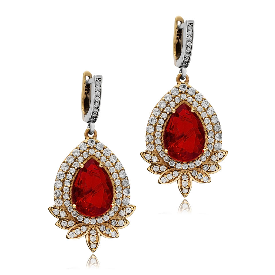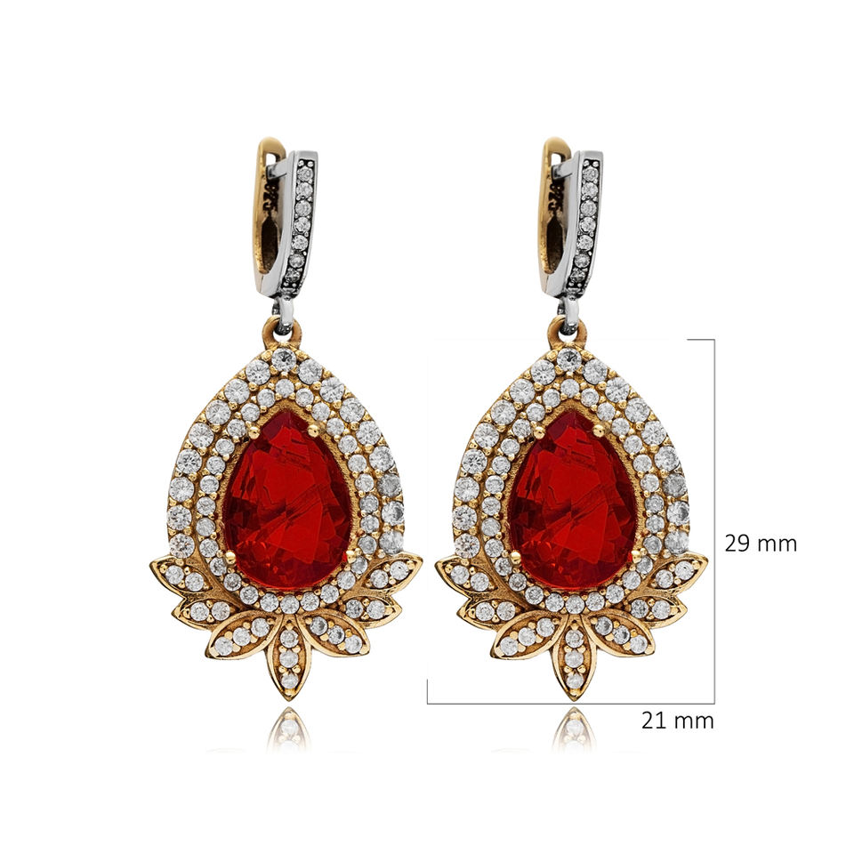 Pendientes colgantes auténticos de piedra CZ granate con diseño en forma de pera otomana, joyería de plata de ley 925 hecha a mano turca al por mayor