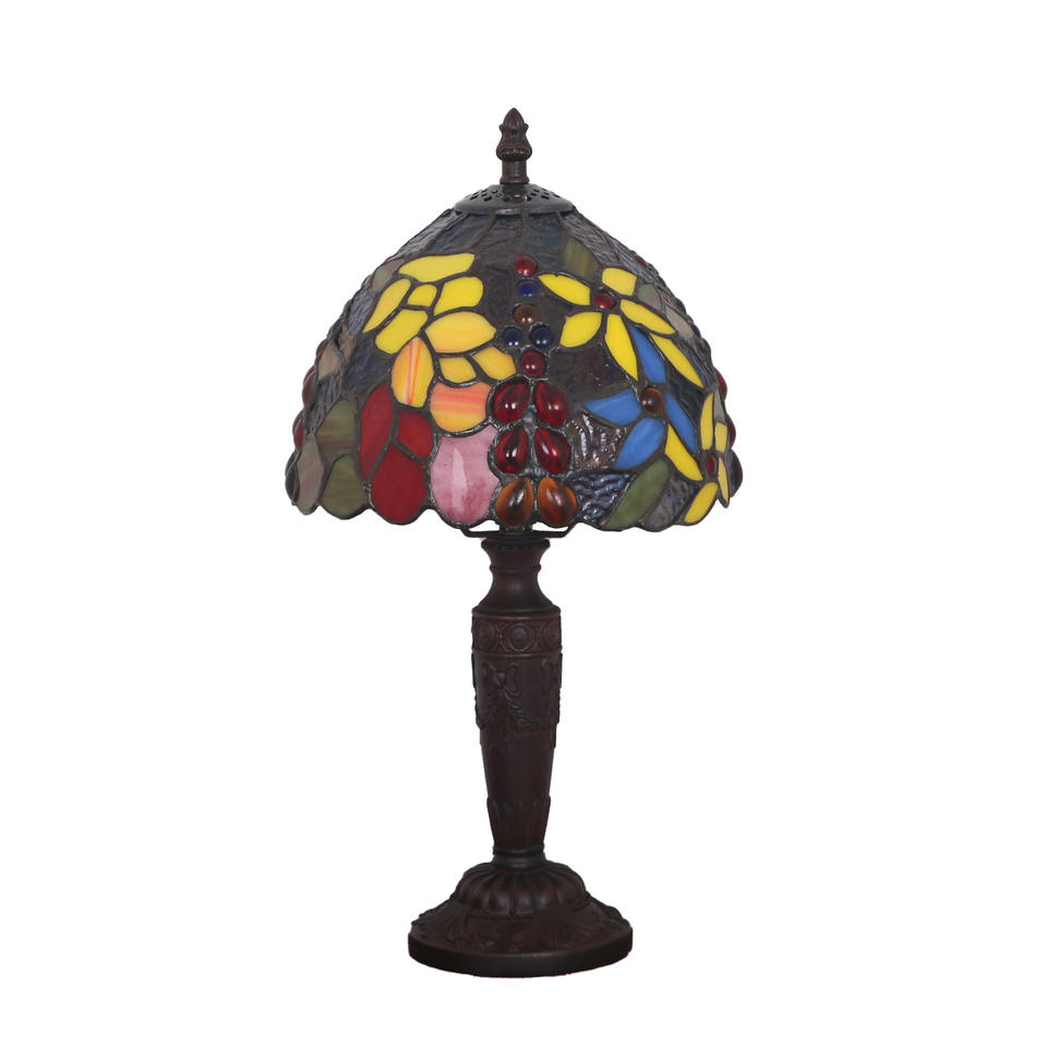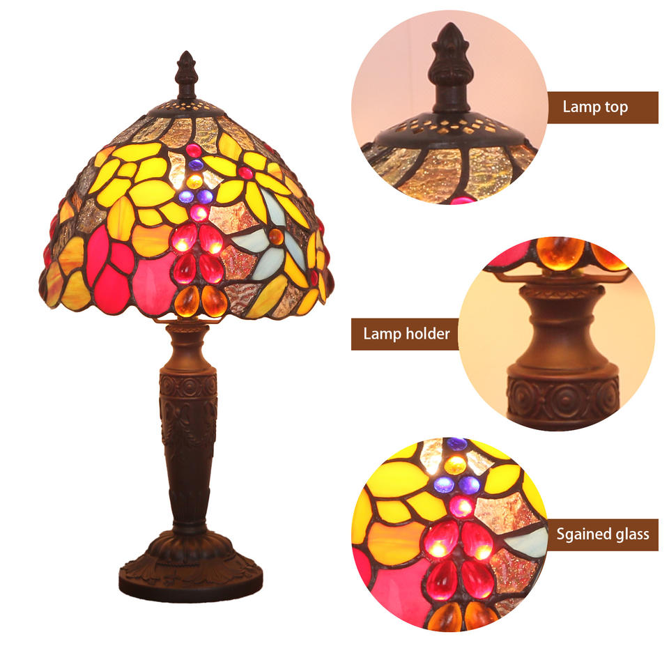 Lámpara de Mesa de Vidrio Estilo Tiffany Creativa Ouhao, Lámpara de Noche Europea para Decoración de Interiores, Lámpara de Lectura Ambiental para Mesa de Noche con Cuerpo de PC