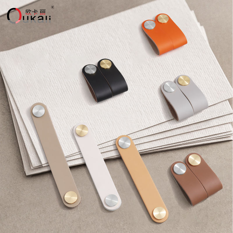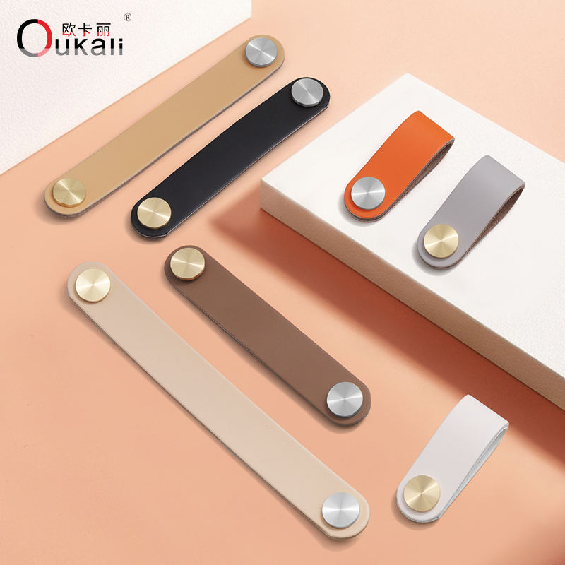 Oukali Color personalizado de alta calidad Hardware para muebles Gabinete Cajón Caja de regalo Tiradores de cuero Tirador