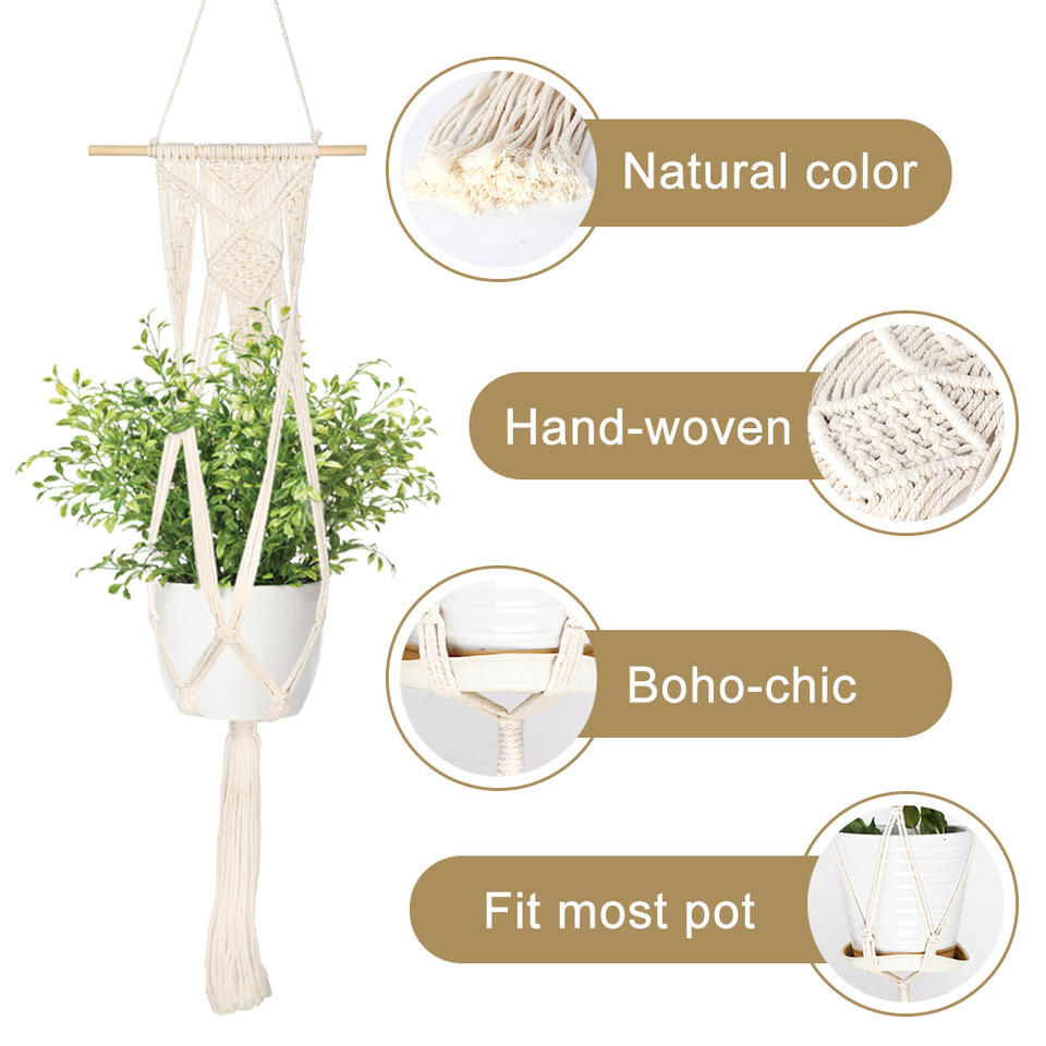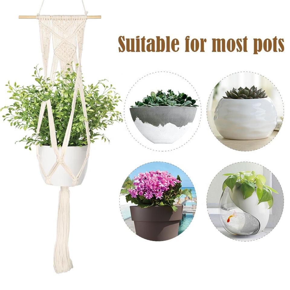 OurWarm-Macramé de 4 Patas de cuerda de algodón 100% hecho a mano, soporte para macramé, colgador de planta, maceta colgante para decoración de pared