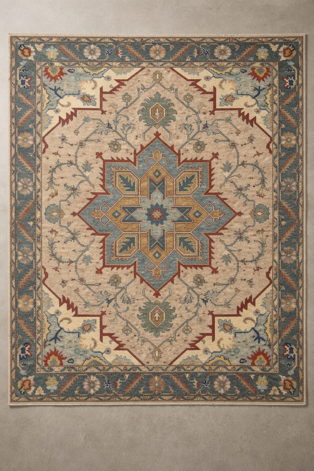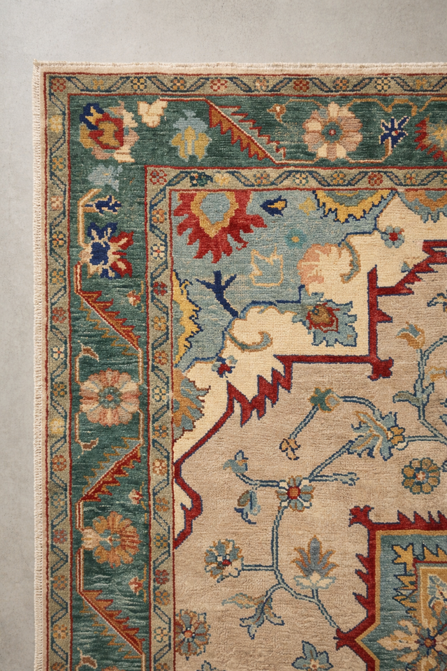 Alfombra de Lana Tejida a Mano Oushak, Diseño de Medallón Turco Vintage, Ecológica, para el Hogar y la Sala de Estar