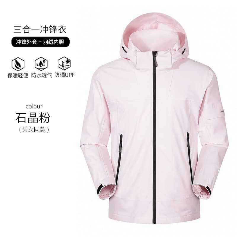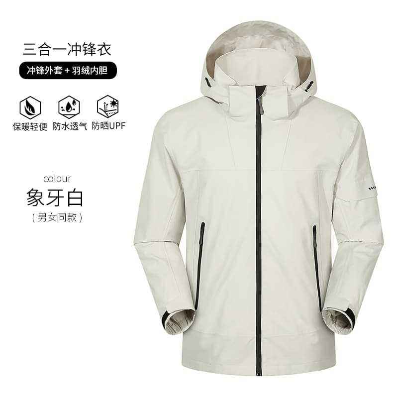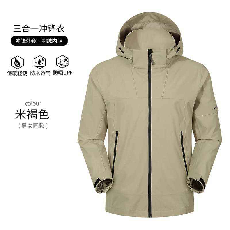 Chaqueta Impermeable 3 en 1 para Exteriores, Rellena de Plumón, Cortavientos, Unisex, Manga Larga, Transpirable, Protección UPF, para Senderismo