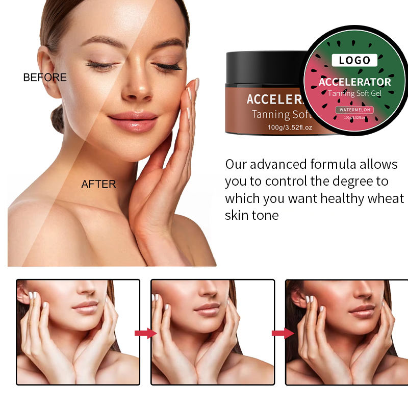 Crema Aceleradora de Bronceado para Exteriores, Bronceador Corporal sin Sol con Aroma a Sandía para Piel Oscura, Gel Autobronceador de Etiqueta Privada Extremo