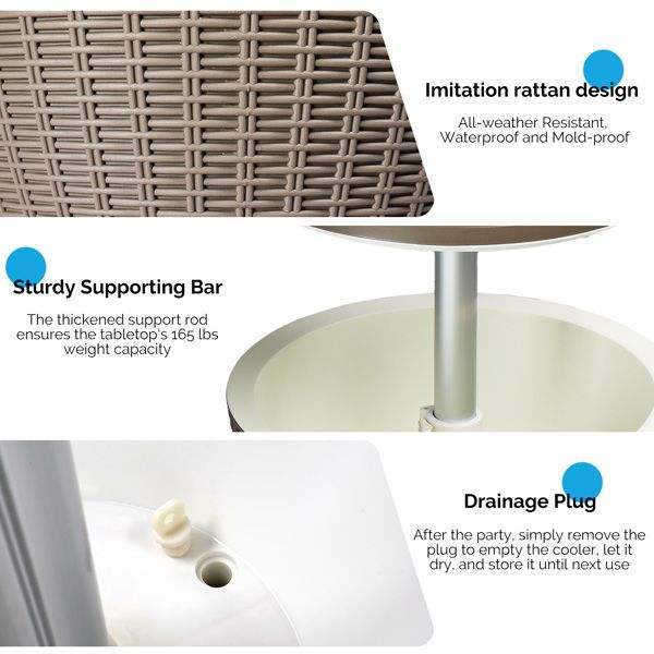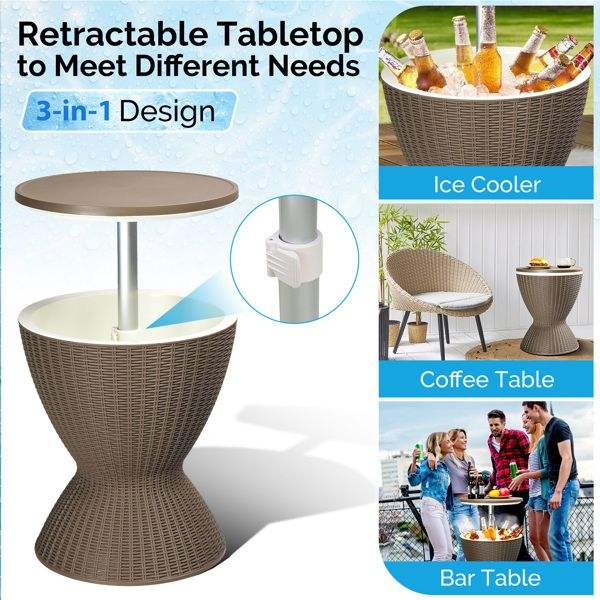 Mesa Enfriadora de Altura Ajustable para Exteriores, Enfriador de Cerveza y Vino de 8 Galones, Enfriador para Patio Resistente a la Intemperie para Bar al Aire Libre