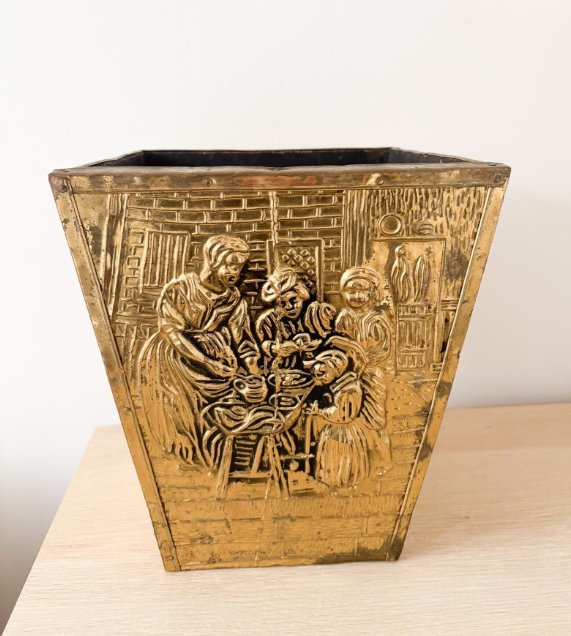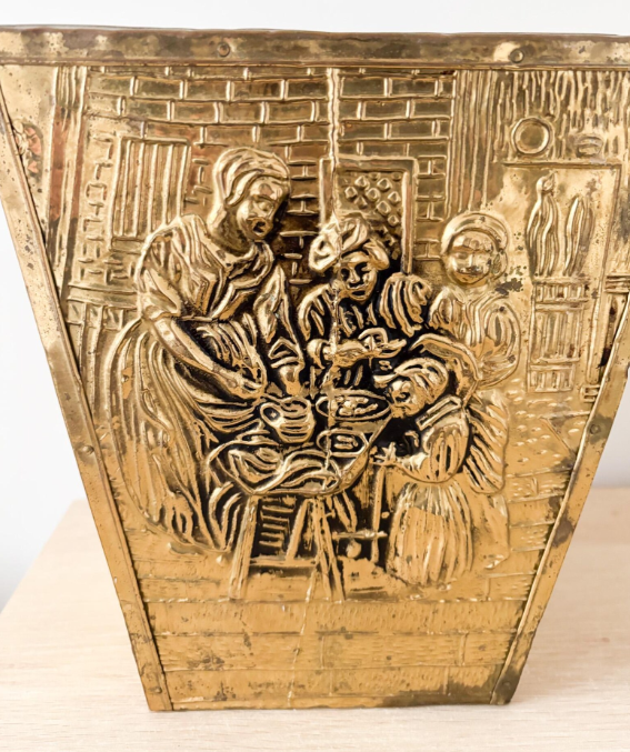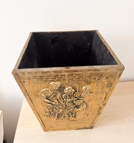 Macetas de Exterior con Acabado de Cobre Antiguo, Diseño Cuadrado en Relieve, Macetero con Asas Laterales, Decoración para Jardín