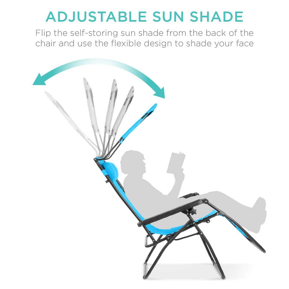 Silla de playa al aire libre con visera plegable, silla de playa reclinable plegable con sombrilla, silla de ocio al aire libre