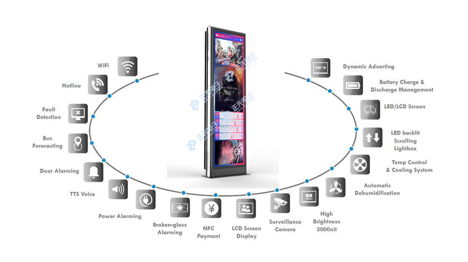 Al aire libre de la parada de autobús señalización digital autobús refugio publicidad digital signage