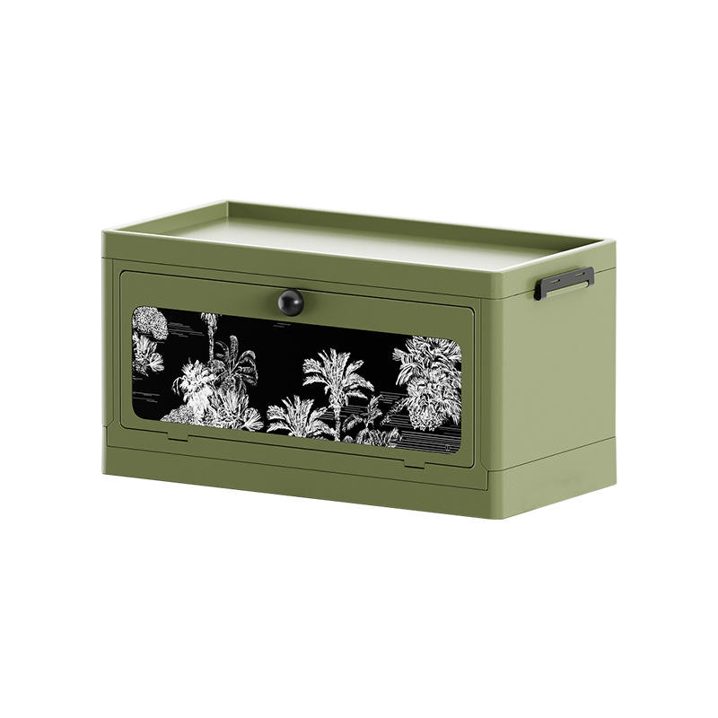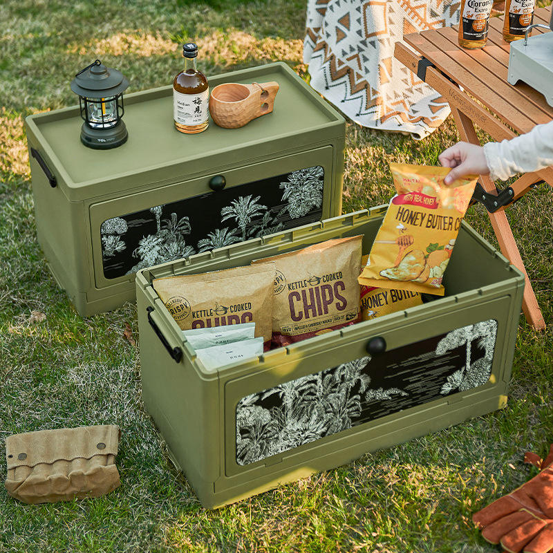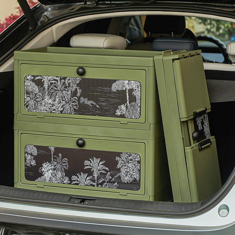 Caja de almacenamiento para camping al aire libre con apertura lateral, estilo vintage, color verde, tamaño grande, plegable, con tapa de madera para llanta de repuesto de coche.