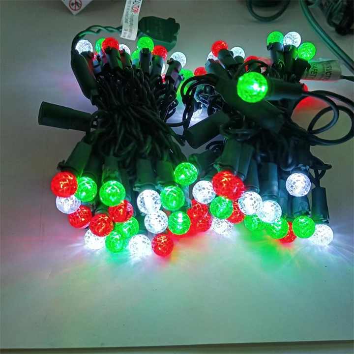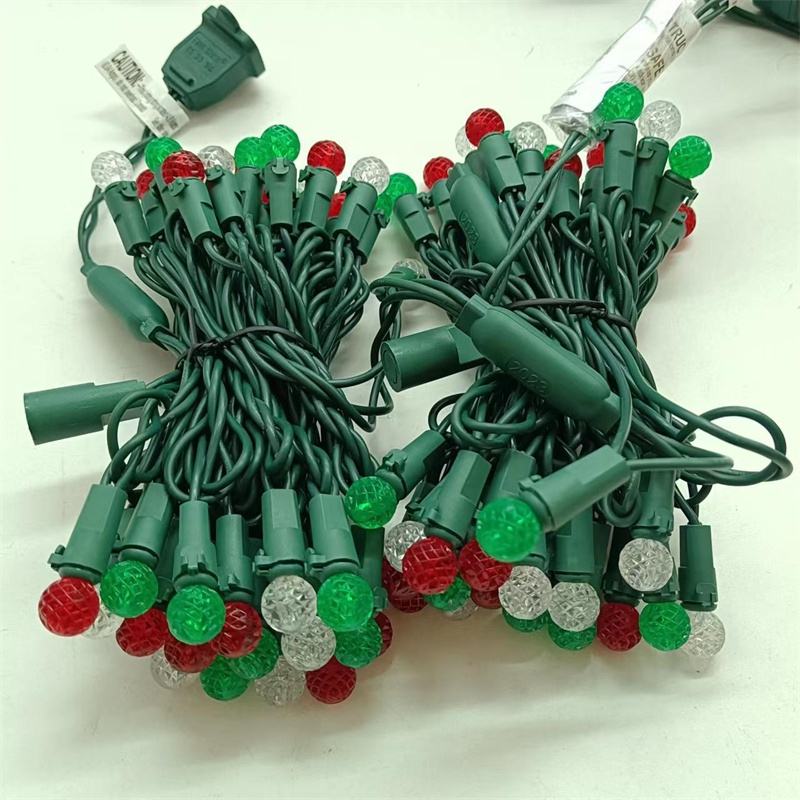 Guirnalda de luces LED navideñas para exteriores, bombillas de frambuesa G12 rojas y blancas, espaciado de 4 pulgadas, 24 ''70 luces, grado comercial