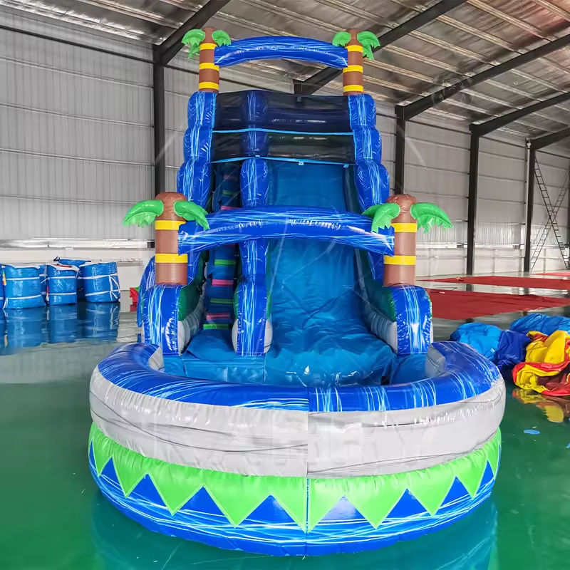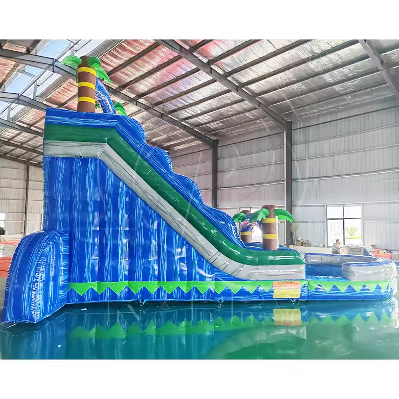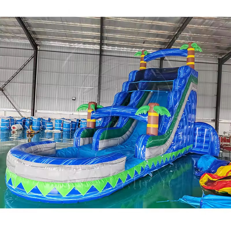 Tobogán acuático inflable comercial para uso en interiores Material de PVC colorido Tamaño gigante con piscina y tobogán de salto a la venta