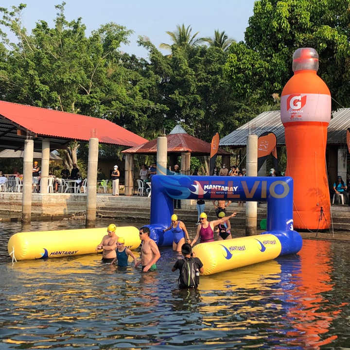 Arco deportivo de carrera flotante personalizado al aire libre para eventos de natación en agua, publicidad sellada, línea de meta, entrada de arco inflable
