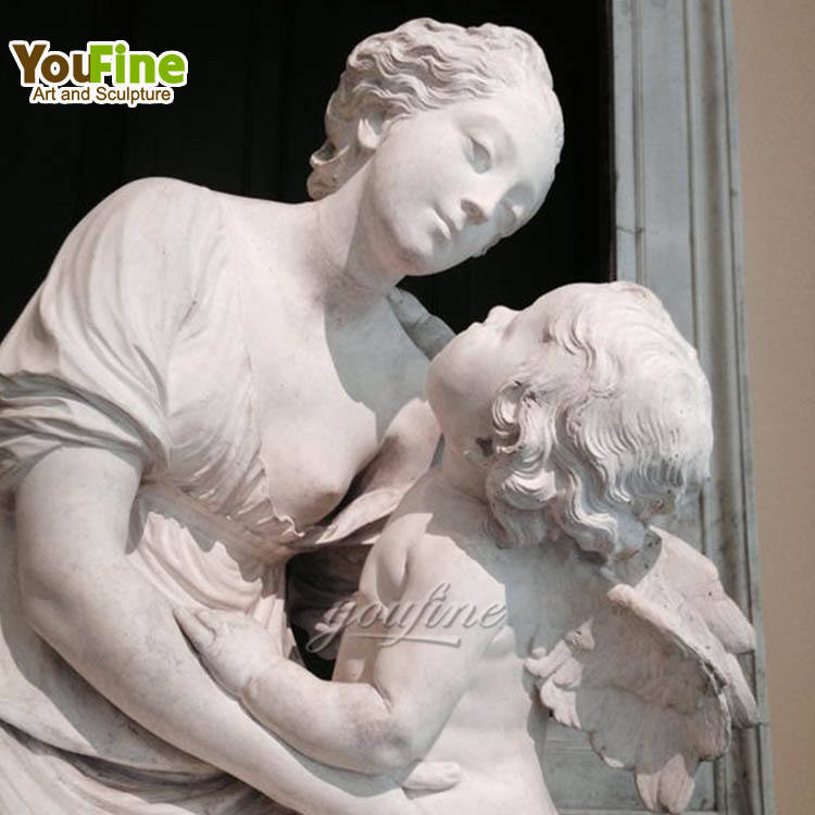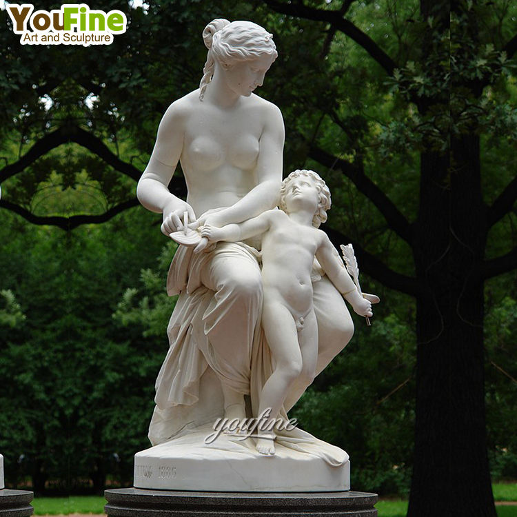 Estatuas de piedra blanca famosas de tamaño real personalizadas para exteriores Escultura de mármol para mujer y niño Embalaje: