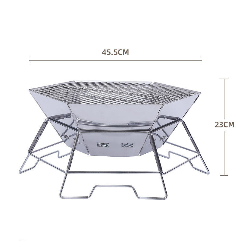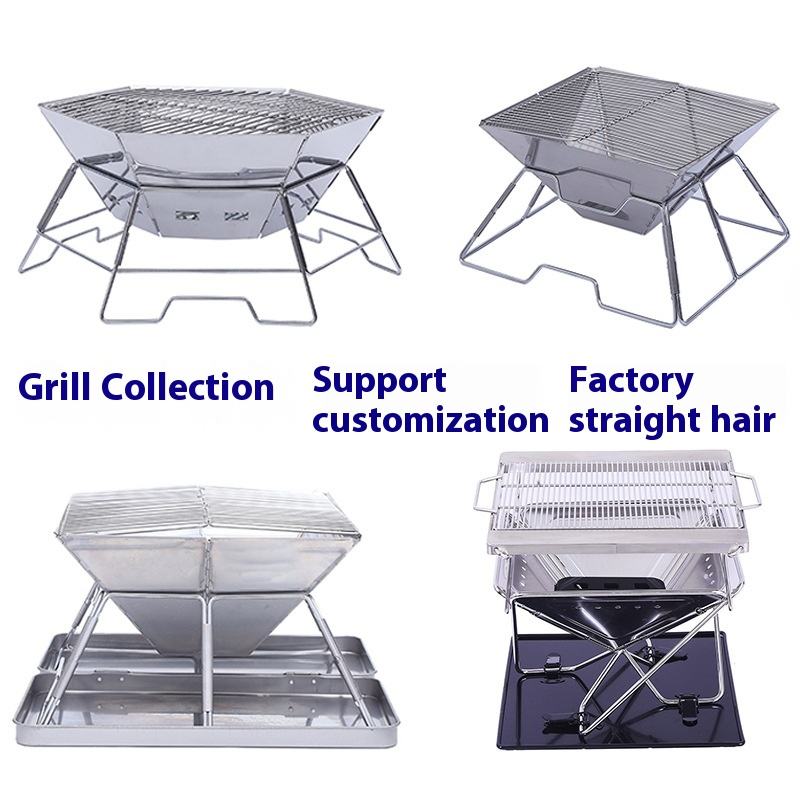 Parrilla de barbacoa de acero inoxidable portátil personalizada para exteriores, plegable estufa de leña, mesa de fuego, combustible de Gas, venta al por mayor