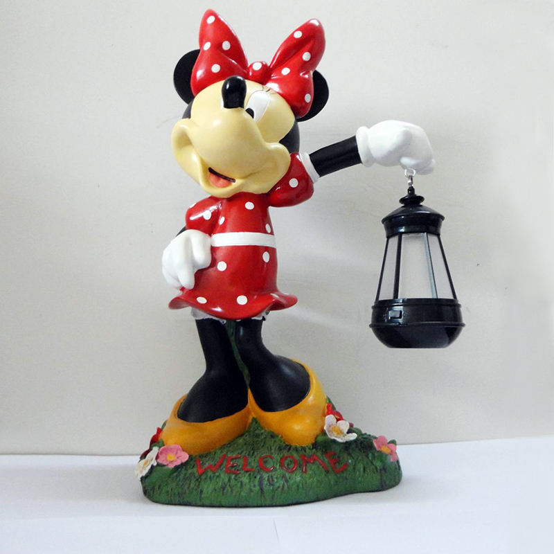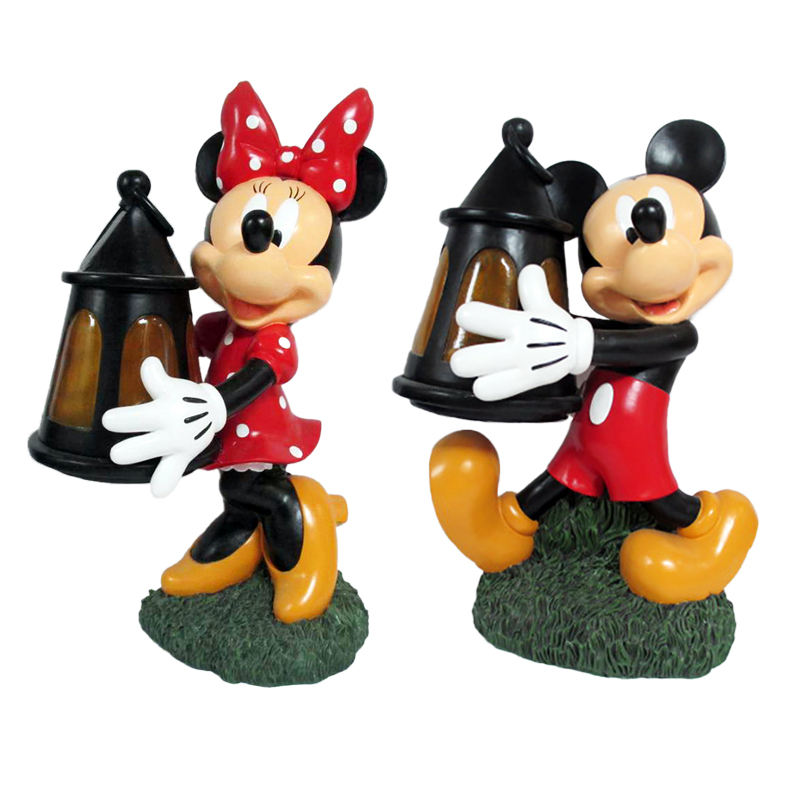Decoración al aire libre dibujos animados personalizado 3D escultura Vintage hecho a mano estatua Mickey llevar linterna resina jardín Animal estatuilla conjunto