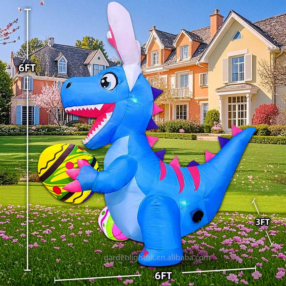 Decoración Exterior Inflable de Pascua, Dinosaurio de 6 Pies con Huevo y Luces LED Integradas, Decoración Inflable para Jardín, Hogar y Fiestas