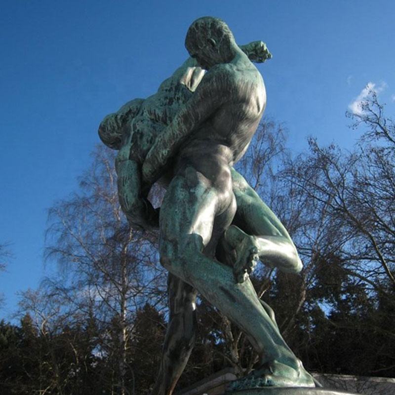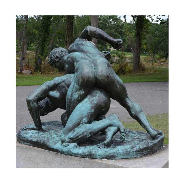 Vida tamaño metal bronce dos hombres desnudos lucha estatua