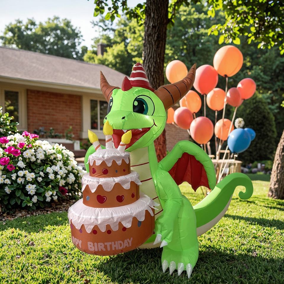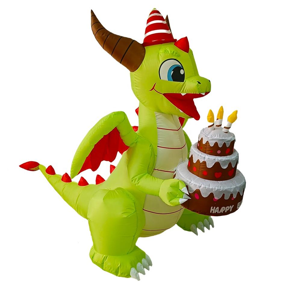 Decoraciones al aire libre inflables 5 pies inflables cumpleaños dinosaurio pastel para fiesta de feliz cumpleaños