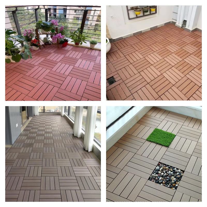 Baldosas de terraza decorativas para exteriores, de WPC, entrelazadas, de compuesto de madera y plástico.