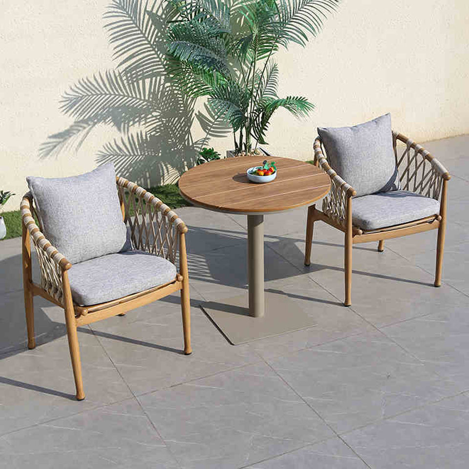 Main Material:Solid Teak Wood + Metal Powder Caoted + Rope + Cushion
