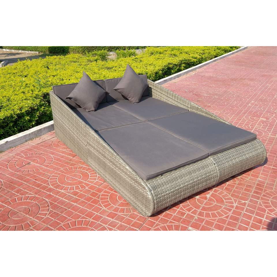 Tumbona de mimbre doble para exteriores con respaldo para muebles de jardín o uso de cama de día