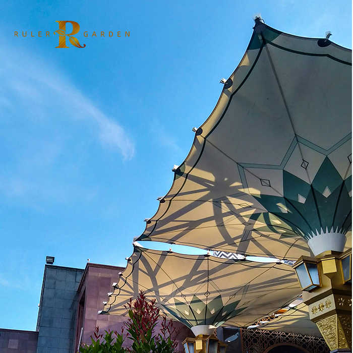 Barra de paraguas retráctil grande eléctrica para exteriores, áreas peatonales, marco de aluminio para Plaza, diseño personalizado, toldo decorativo comercial