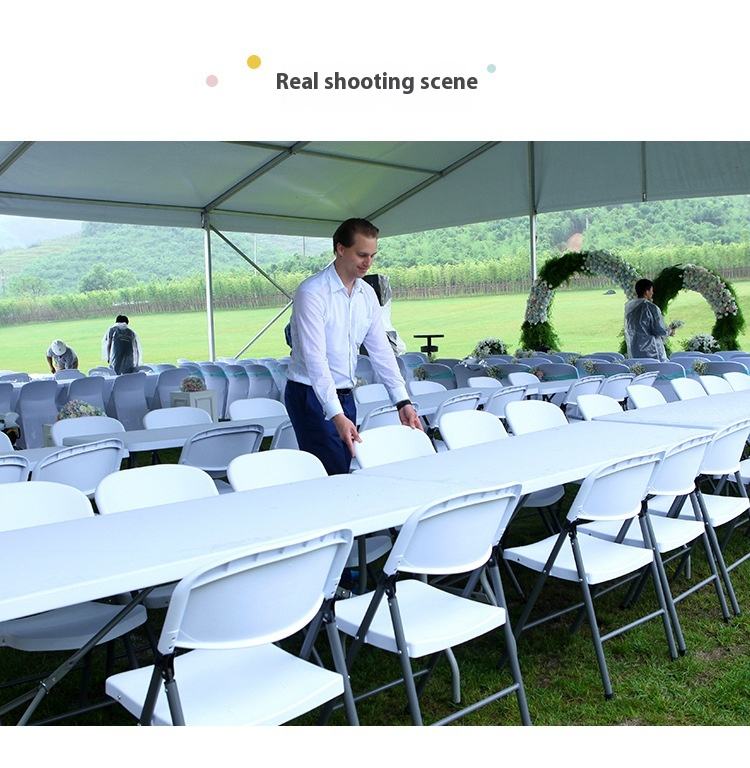 Mesa y banco plegables de hierro para exterior, portátiles con asientos de HDPE, ideales para puestos, exposiciones, restaurantes o estudio
