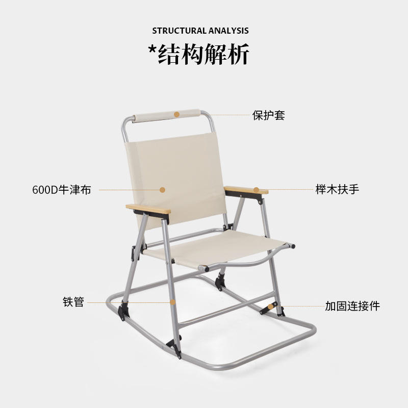 Silla mecedora plegable para exteriores, silla portátil de tela Oxford para acampar, 84x56x85cm, asiento individual, blanco y negro