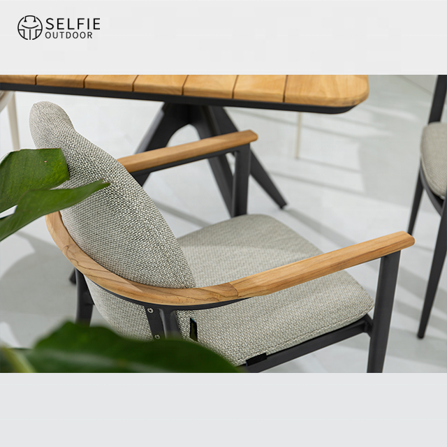 Muebles Modernos para Exteriores, Mesas de Banquete para Patio, Sillas de Cuerda, Estructura de Aluminio, Madera de Teca, Silla para Jardín, Villa, Parque, Dormitorio, Escuela