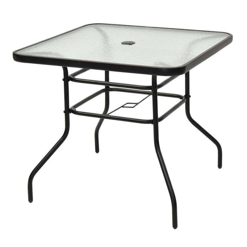 Mesa de Vidrio para Exteriores con Marco de Metal, Diseño Cuadrado Moderno, Muebles Duraderos para Patio