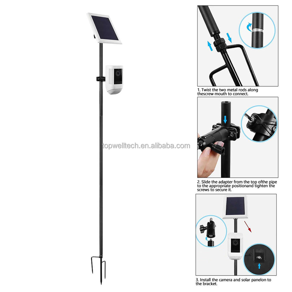 Soporte de estaca de tierra para exteriores Montaje en panel solar negro para cámaras Ring, Blink, Arlo, Eufy, Wyze, Google Nest Simplisafe