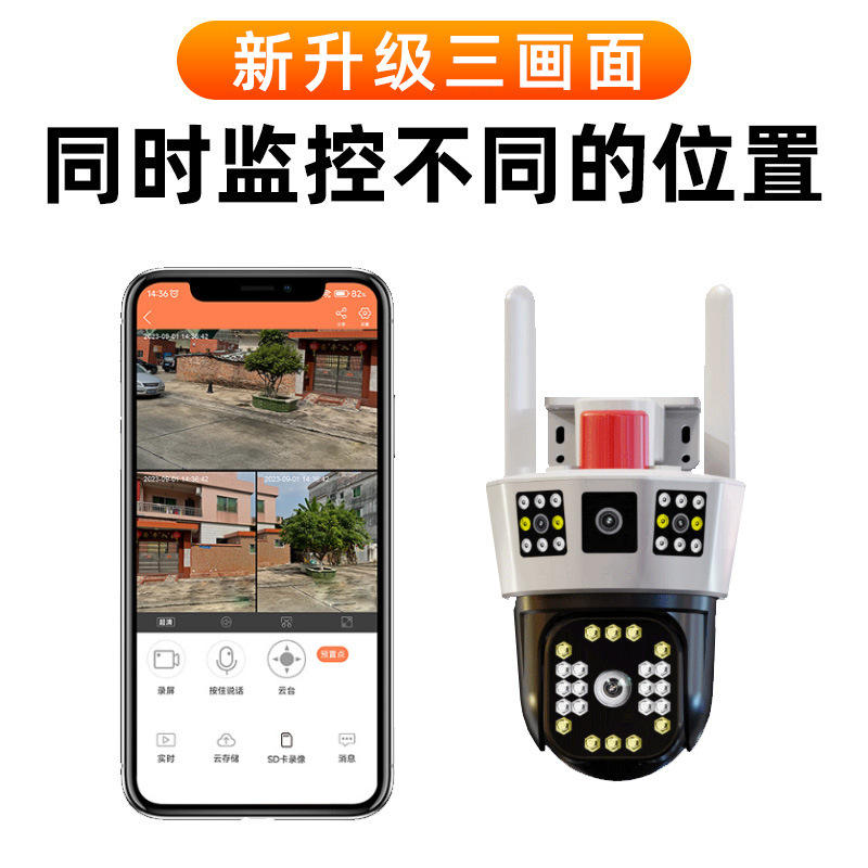 Cámara de Vigilancia Exterior HD de Triple Visión 1080P WiFi PTZ con Visión Nocturna a Todo Color, Panorámica, 4G, para Seguridad del Hogar
